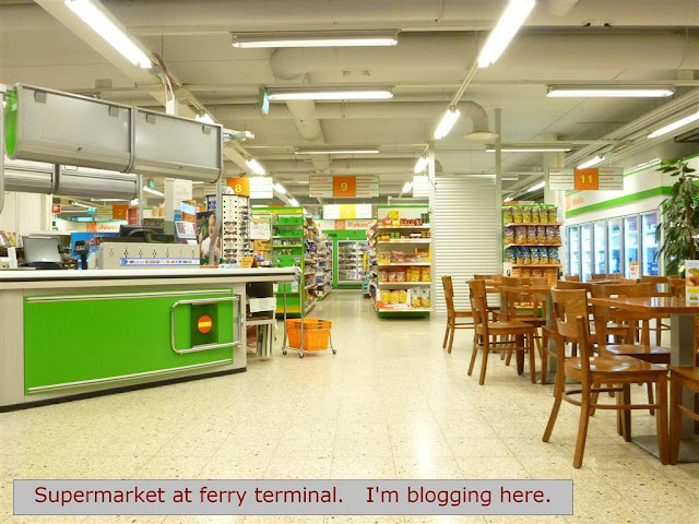 The ferry leaves at 6:30 pm, so I have found a real nice supermarket with a couch and free internet, so here I type.